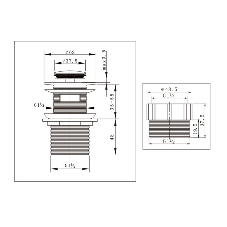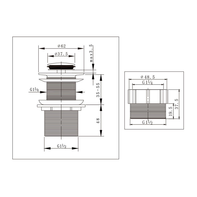 Con un diámetro de 37.5 mm, estos desechos se diseñan específicamente para drenar eficientemente el agua de su cuenca de lavado, evitando cualquier obstrucción o bloqueo. El acabado suave permite una fácil limpieza y mantenimiento, asegurando una experiencia sin problemas para usted.